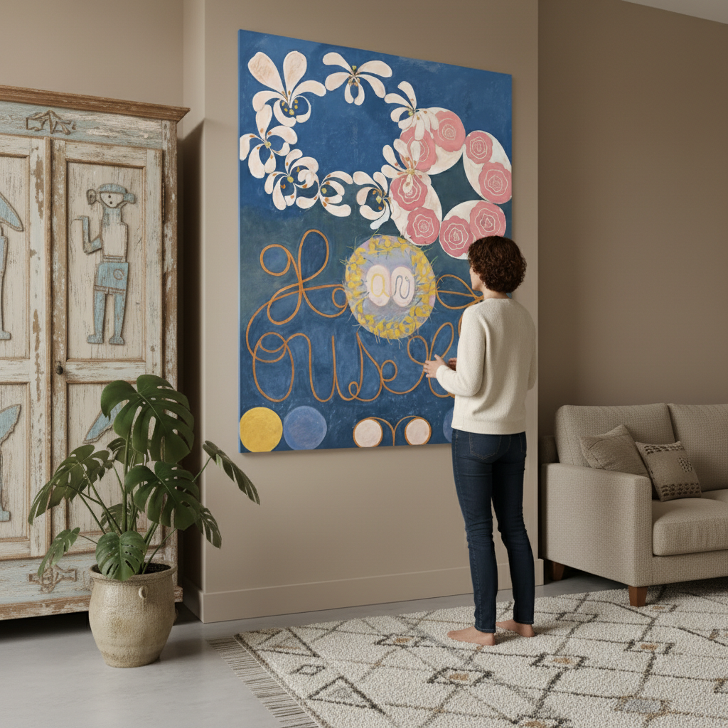 Browse 120+ curated rooms — each one shows your art at accurate scale, instantly.